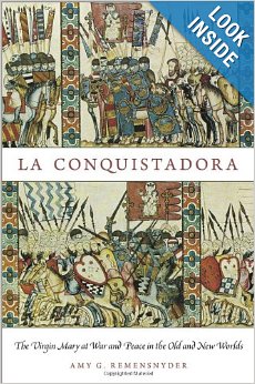 La Conquistadora is the next book I will be reviewing for H-Net. I’m not even halfway through this massive book–in its chronicling of the Reconquista of Iberia from the Moors, I have only just now reached the crucial year of 1492, only to see it backtrack a bit in Part II to talk about how Mary was an object of veneration for Muslims and Jews as well as Christians, even as she was also called upon by Spanish kings and aristocrats to fight on the side of Christian armies. In the third section, Amy Remensnyder’s book will discuss Mary’s career in this hemisphere, which, given my book’s interest in discussing (New Spain’s) Virgen de Guadalupe, should make for engaging reading–not that it hasn’t been so far. (What disappointment I feel is simply that I’m not further along in reading it than I am, and not with the book itself.)